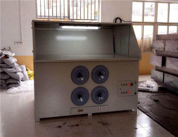 公司同时生产各类非标抽风式工作台,其本身不带净化装置,可使用中 央除尘器带动多台抽风式打磨除尘台。中 央除尘器内部具有大颗粒粉尘分离、收集功能,配有粉尘储存抽屉。