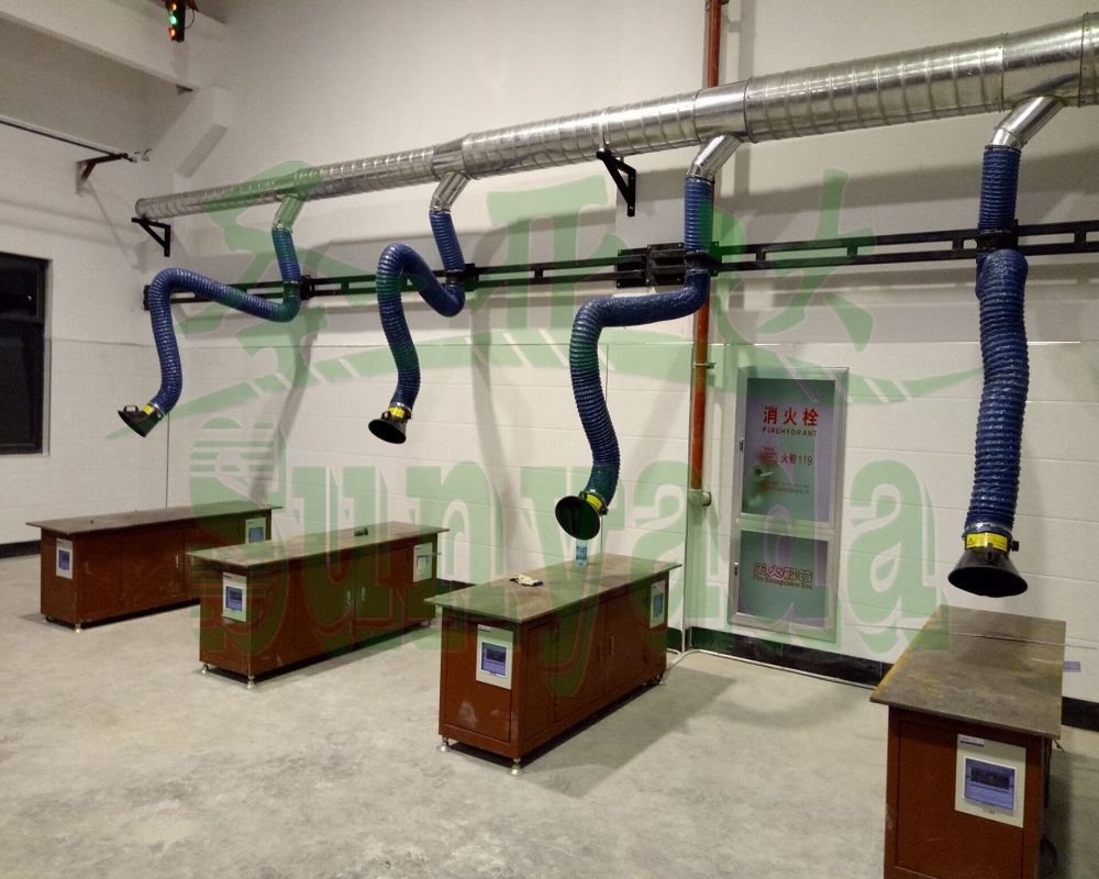 通风除尘措施是治理电焊烟尘的主要手段。目前国内常用的局部通风方式有单一台位排风和多台位排风,其通风设备有自净式通风除尘机组,有固定式通风系统。就目前烟尘治理技术而言,中、小作业范围的烟尘污染较易解决。大规模的电焊作业车间需综合治理措施。