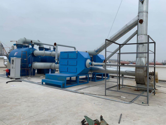 活性炭吸附蒸汽脱附装置吸附过程废气经过除雾器后,进入吸附罐体,经过罐内活性炭吸附后,除去有害成分,符合排放标准的净化气体从罐体右侧排出,经风机高空排放脱附开始时是利用饱和低压水蒸气去加热吸附饱和的活性炭,将被吸附的有机成分激活气化而从活性炭中脱附逸出。恢复活性的活性炭即可以重新吸附有机成分的气体分子。
