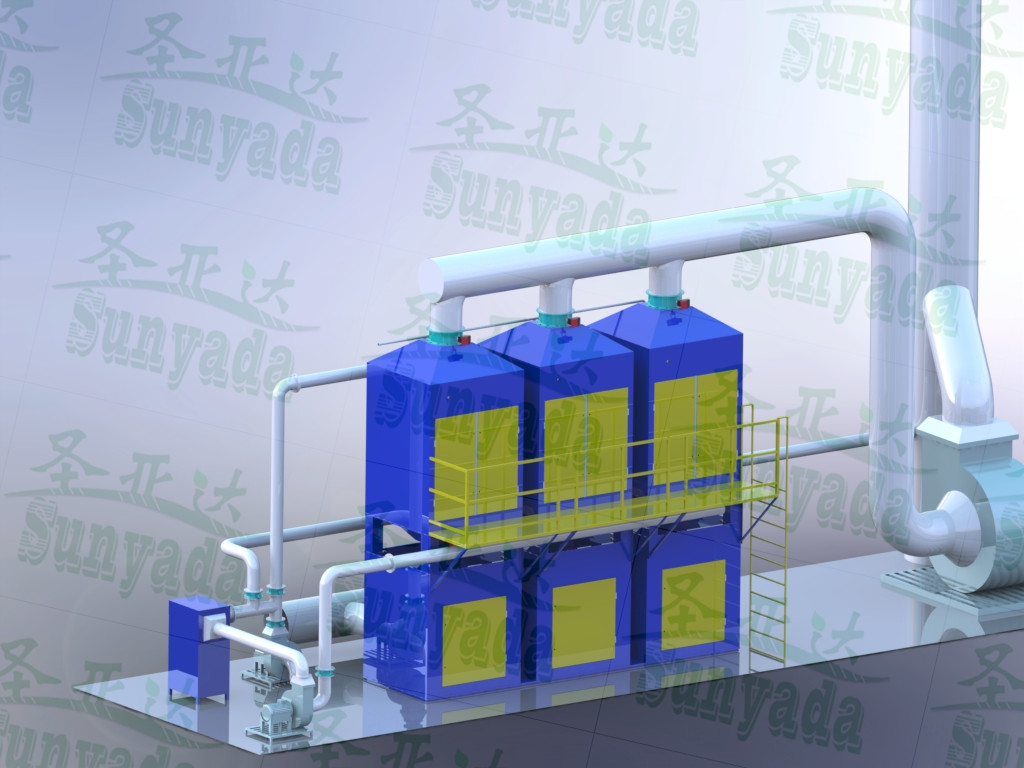 湿式:采用喷淋预处理,耗水量较大,系统庞大,对废气中油雾的去除效率不高,需要配套增加水处理系统以便对水中的油雾和炭黑尘进行处理,出口经常带水,对后续设备造成影响。以上两种预处理方法实际使用效果都不尽理想,因此急需一种对炼胶废气进行高能效、稳定、较为透彻的预处理设备。