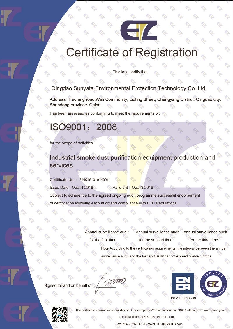 10月8日-10日,ISO9000质量管理体系认证专家组莅临我公司,进行为期三天的ISO9000质量管理体系现场评审认证年审工作,现已正式取得ISO9001质量管理体系认证证书。