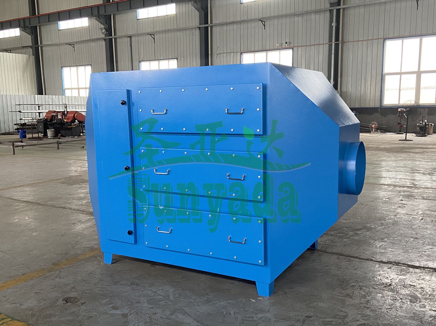 根据青岛某智能设备公司客户车间内的废气排放情况,结合投资成本、处理效果、环保要求等需求,我们为客户定制了8000风量活性炭吸附箱,现已生产完毕,安排发货。