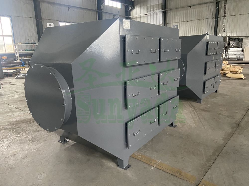 活性炭吸附箱是一种过滤废气、吸附臭味的环保机械,此设备是洁净较浓度较高的化学废气和喷涂废气的吸附可利用率活性炭吸附水平,当废气由离心风机增加动力,负压力进到吸附箱再进入活性炭吸附层,对于溶液的废气有非常好的吸附功效。