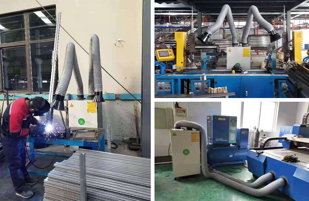 3、利用可360度随意活动的万向吸臂,可从烟气发生处吸除烟气,大大提高了烟尘的收集率,保证了作业人员的健康。
